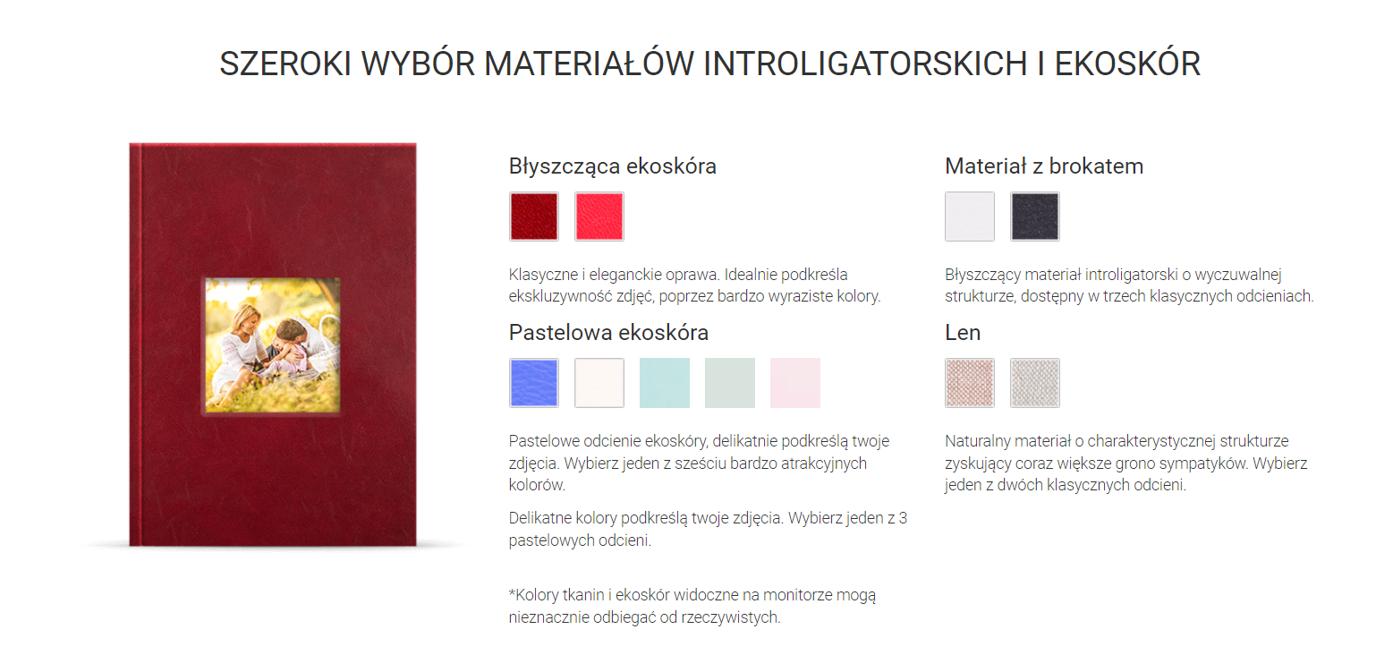twarda okładka – laminat, ekoskóra lub materiał